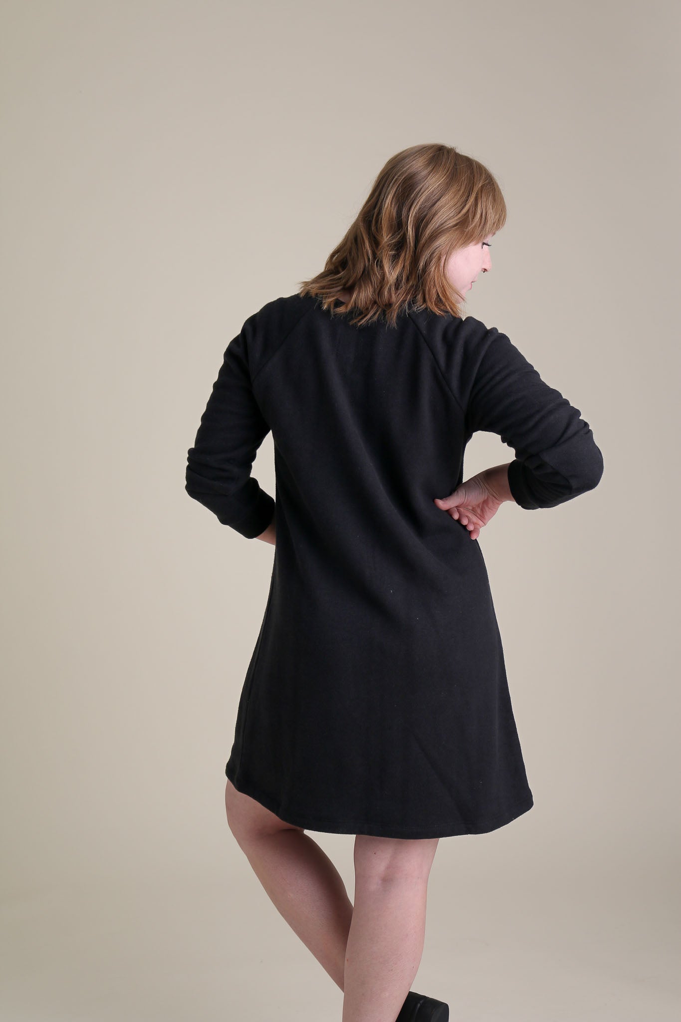 The perfect piece for our winter dress lovers. This cozy fleece Cabin Dress can be worn alone or styled with jeans or leggings for extra warmth. Slightly a-line shape and raglan sleeves with a cuff at the wrist. Our Hemp + Organic Cotton Fleece blend will be sure to keep you warm.