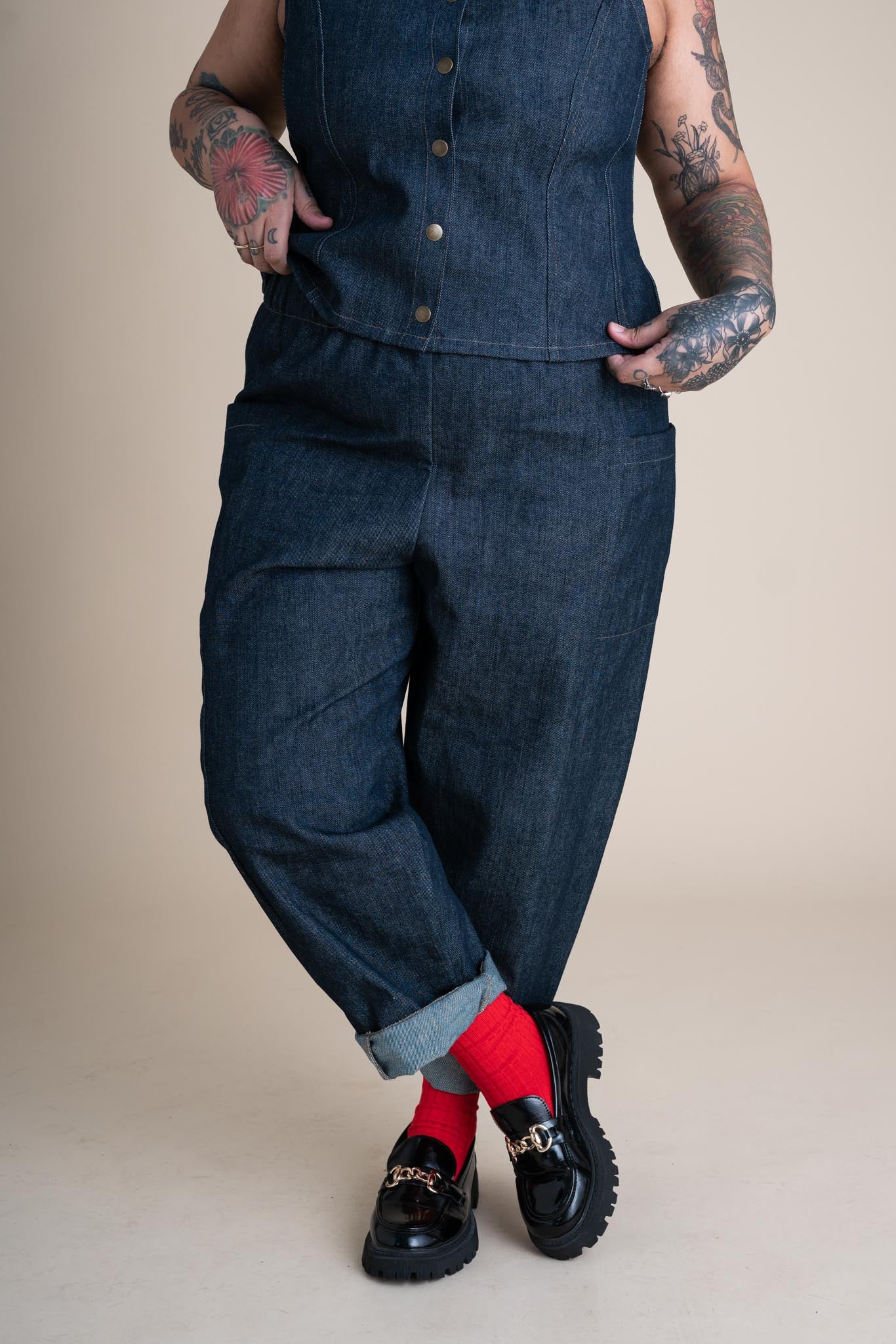 Unisex Cinema Pants, perfect for carrying your essentials with ample side pockets and a secure waistband. Made with cotton grown and milled in the USA. A stylish design that flatters all body types. Now with a draw string!