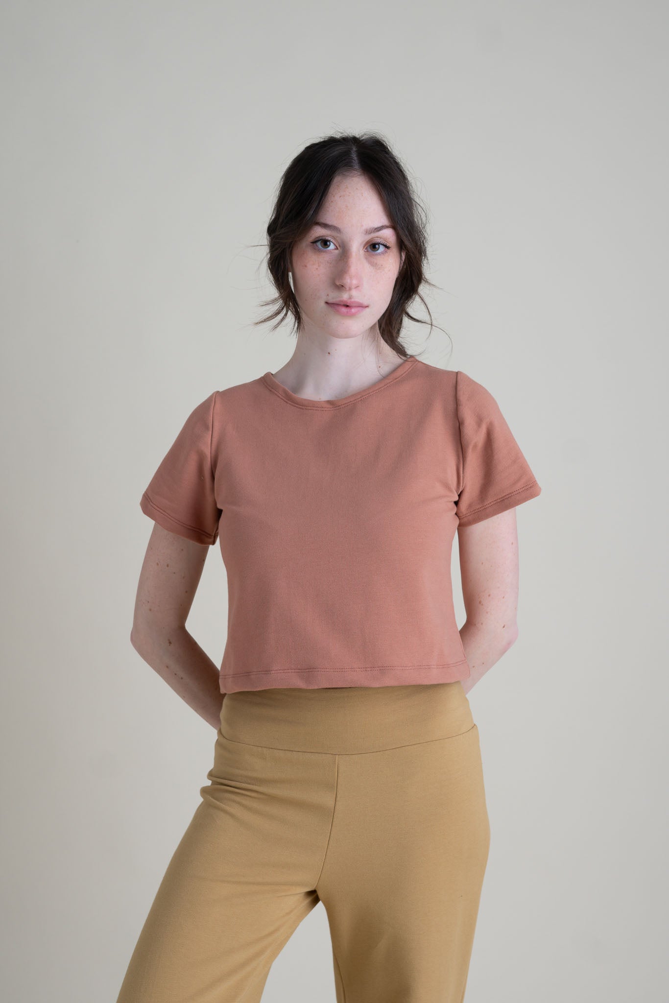 This everyday essential features a crew neckline, short sleeves and is cropped to the waist. Mix + Match with our other french terry pieces, layer under your favorite jumpsuit or wear with high waisted jeans. The Eden Crop Tee is sure to be a wardrobe staple.