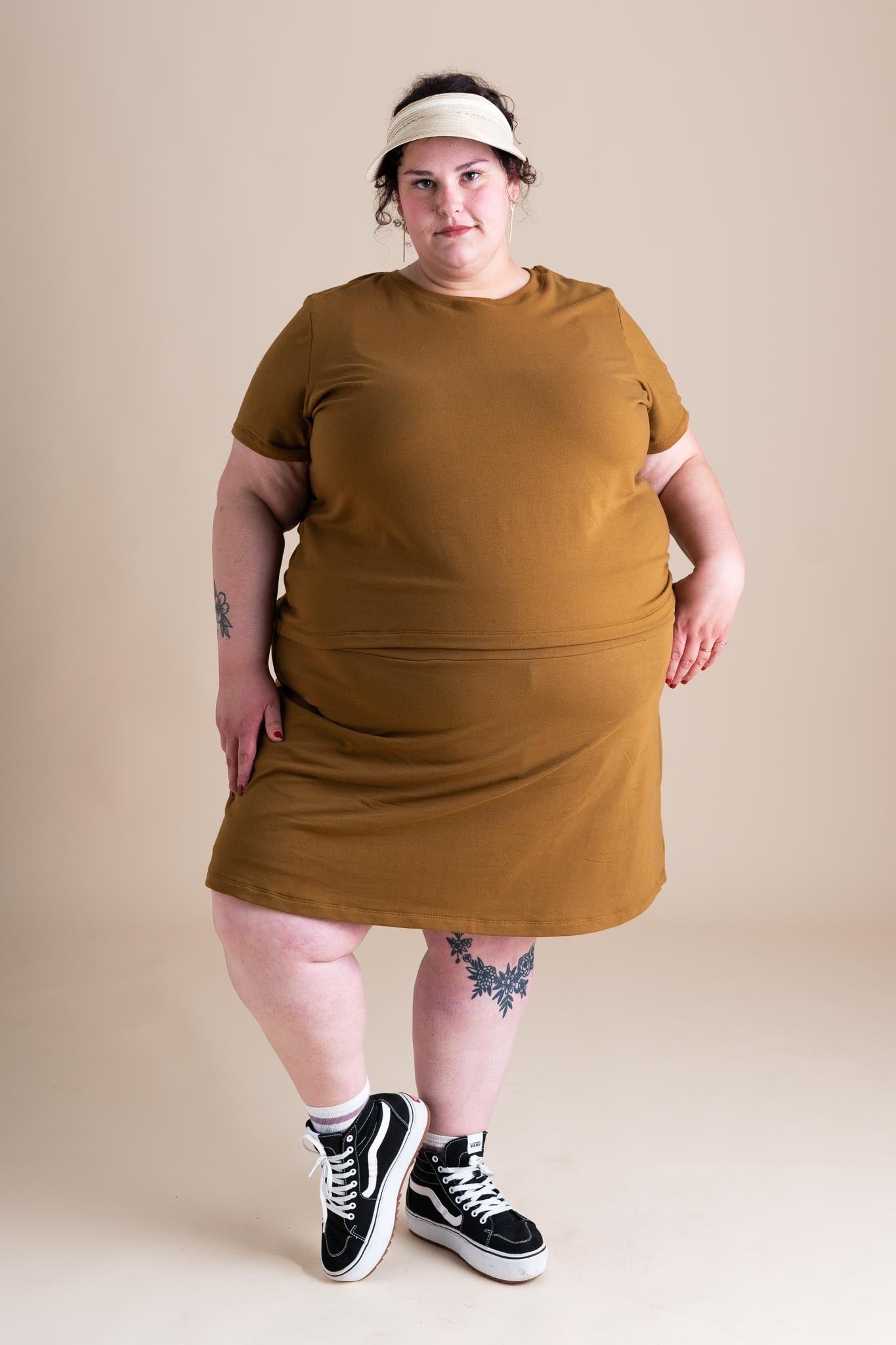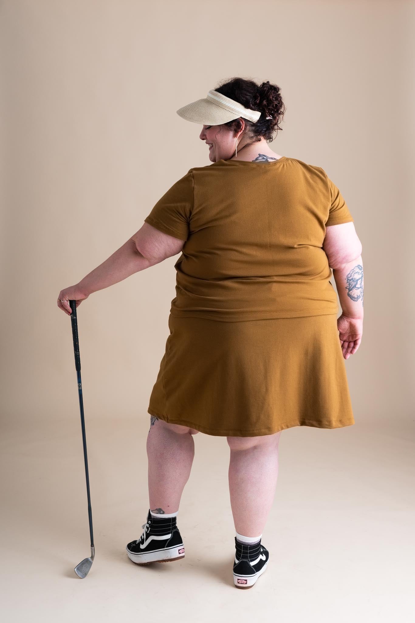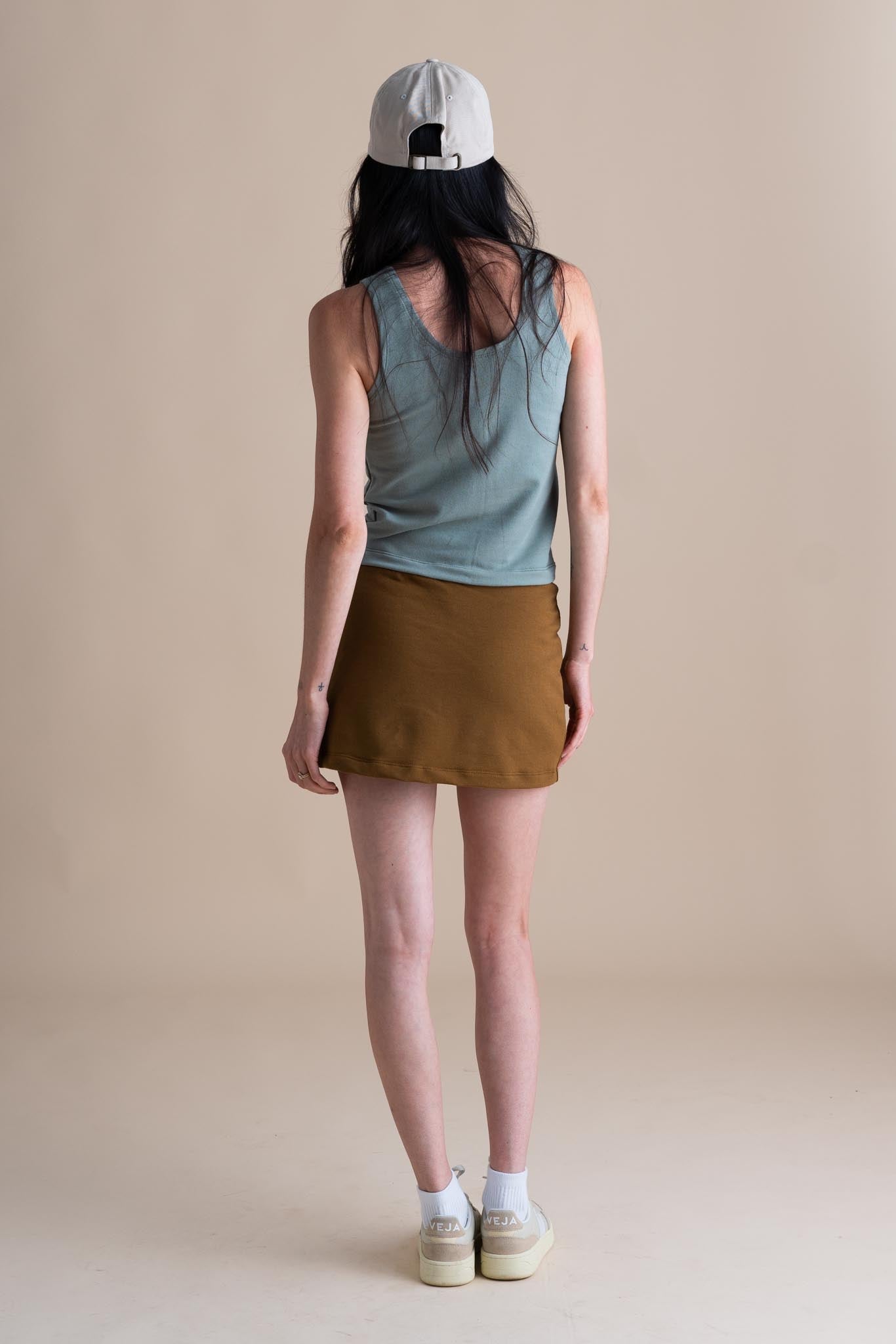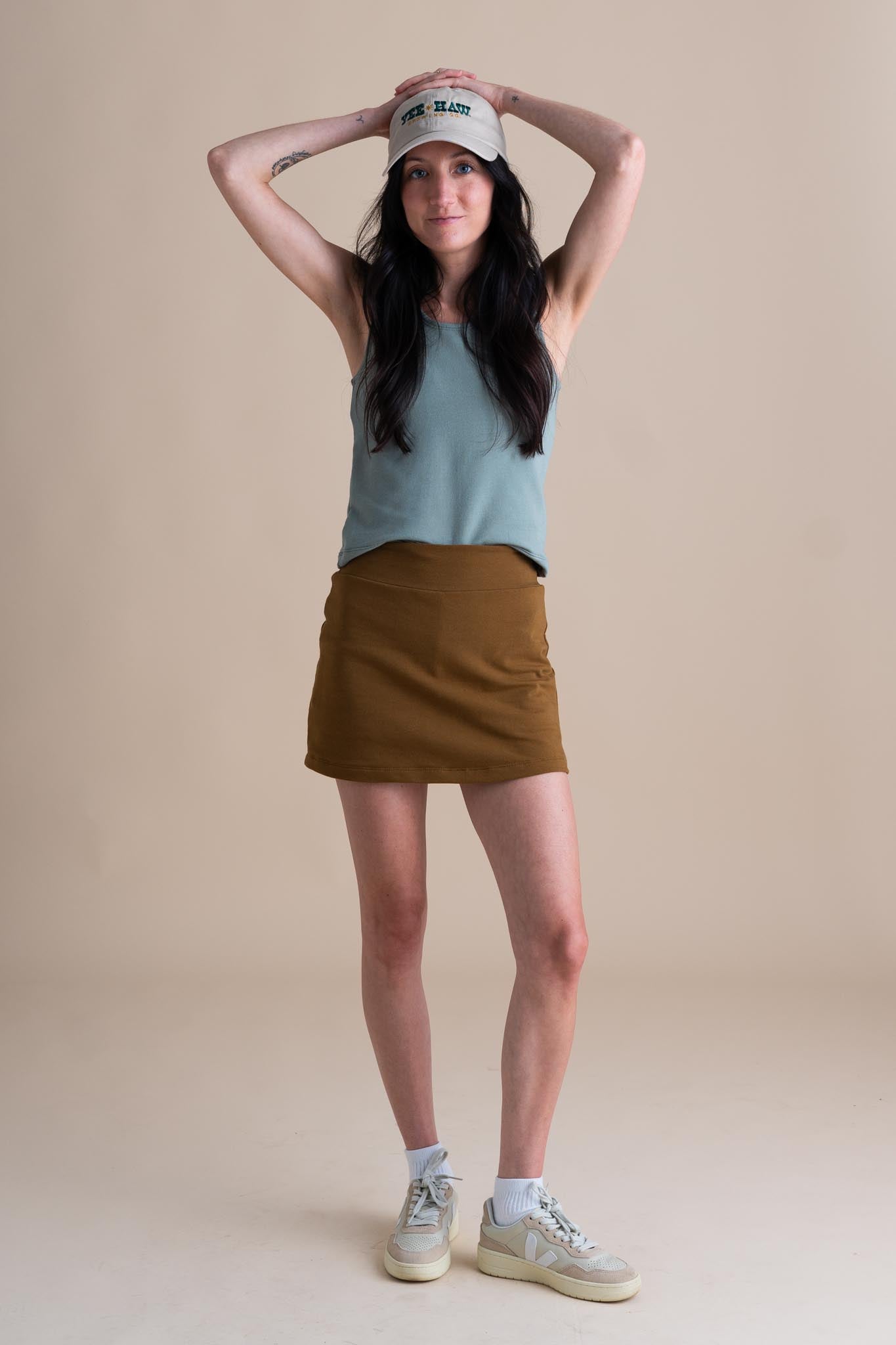 Designed with a casual mid-thigh length and a non-elastic waistband, the Elsa Skort offers a flattering fit with unrestricted movement. Whether you're heading to the farmer’s market, biking through town, or just lounging in the sun, this USA-made organic cotton skort delivers sustainable style and everyday comfort.