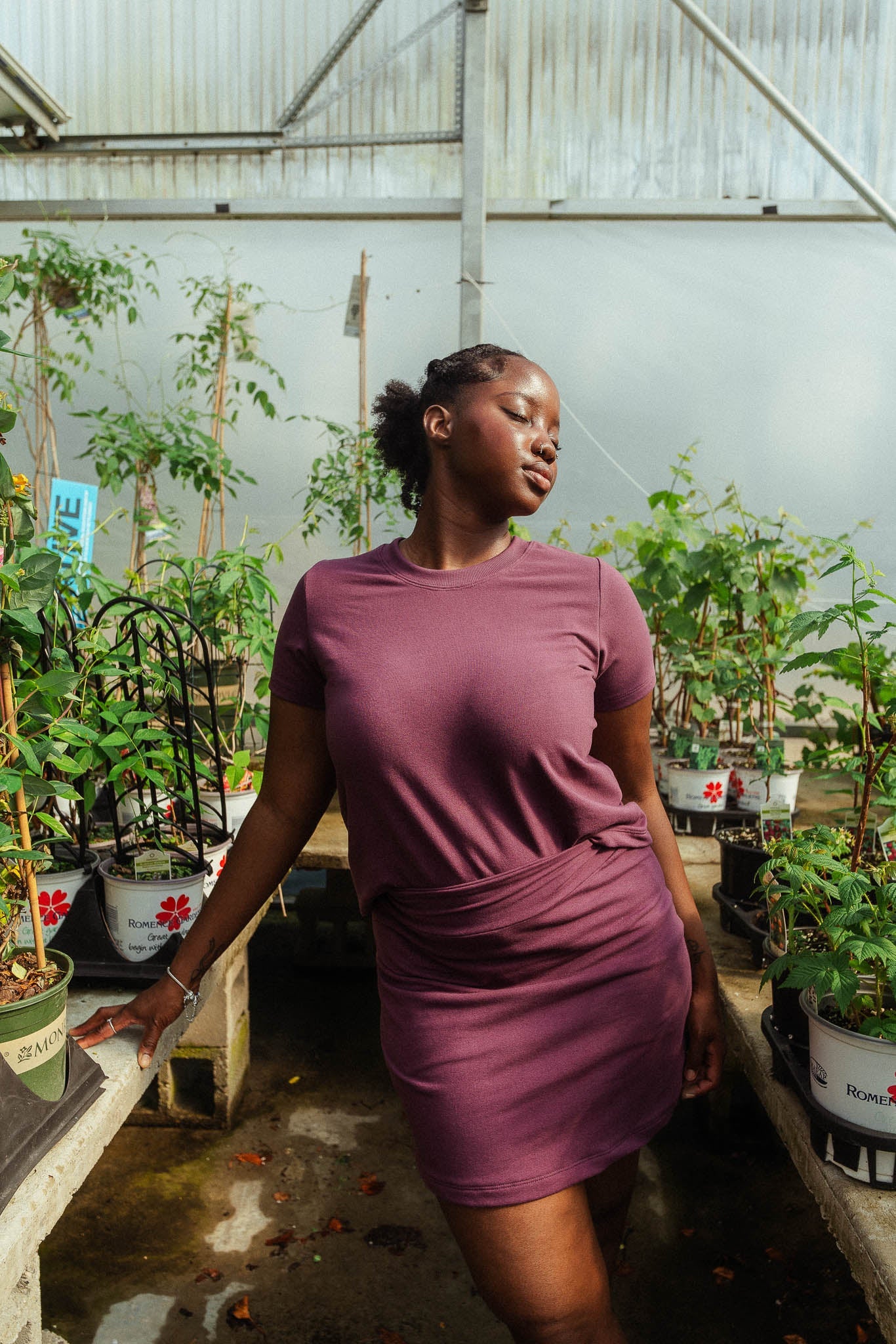 Designed with a casual mid-thigh length and a non-elastic waistband, the Elsa Skort offers a flattering fit with unrestricted movement. Whether you're heading to the farmer’s market, biking through town, or just lounging in the sun, this USA-made organic cotton skort delivers sustainable style and everyday comfort.