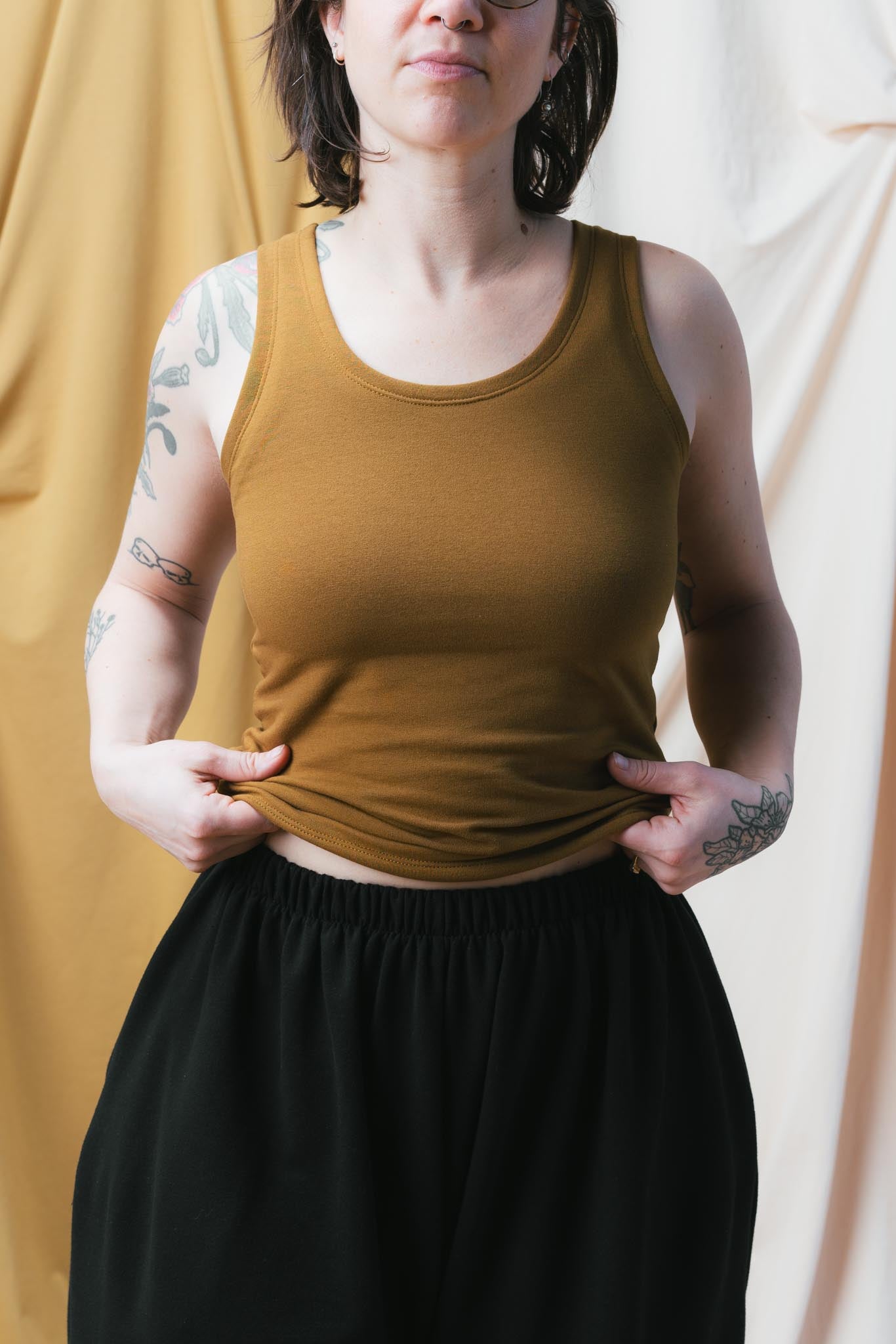 The Frances Tank (FKA The Lounge Tank) is perfectly layerable and available in two lengths. With a scooped neckline and slight body hugging shape, it’s ideal for tucking into your favorite jeans and throwing on a Homestead Jacket.
