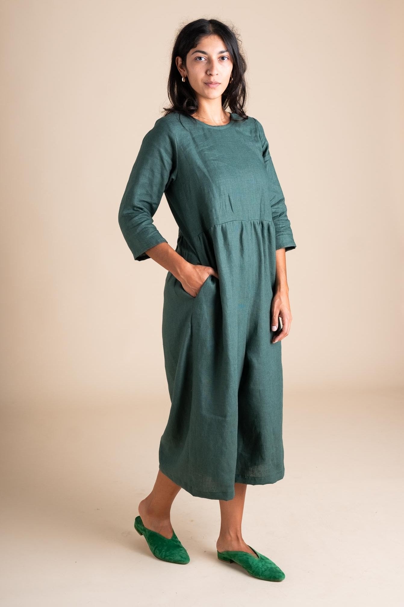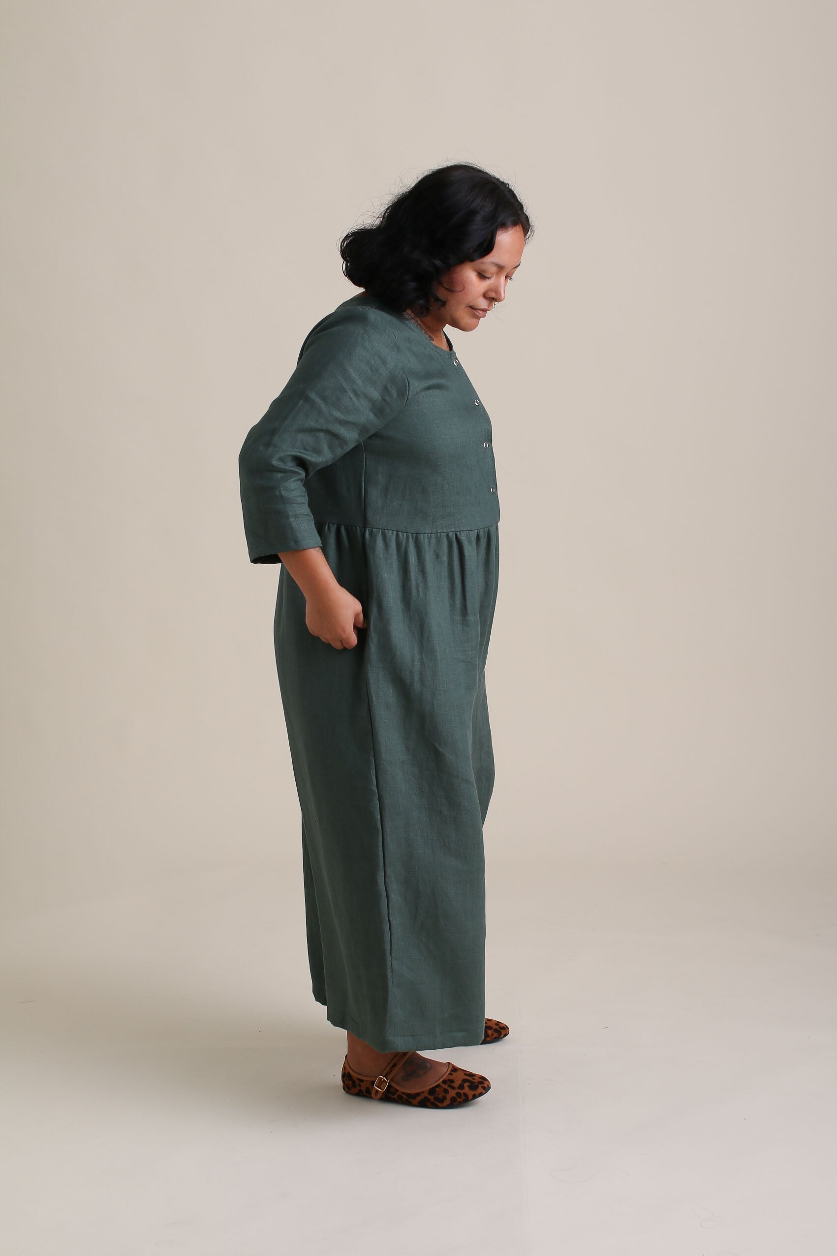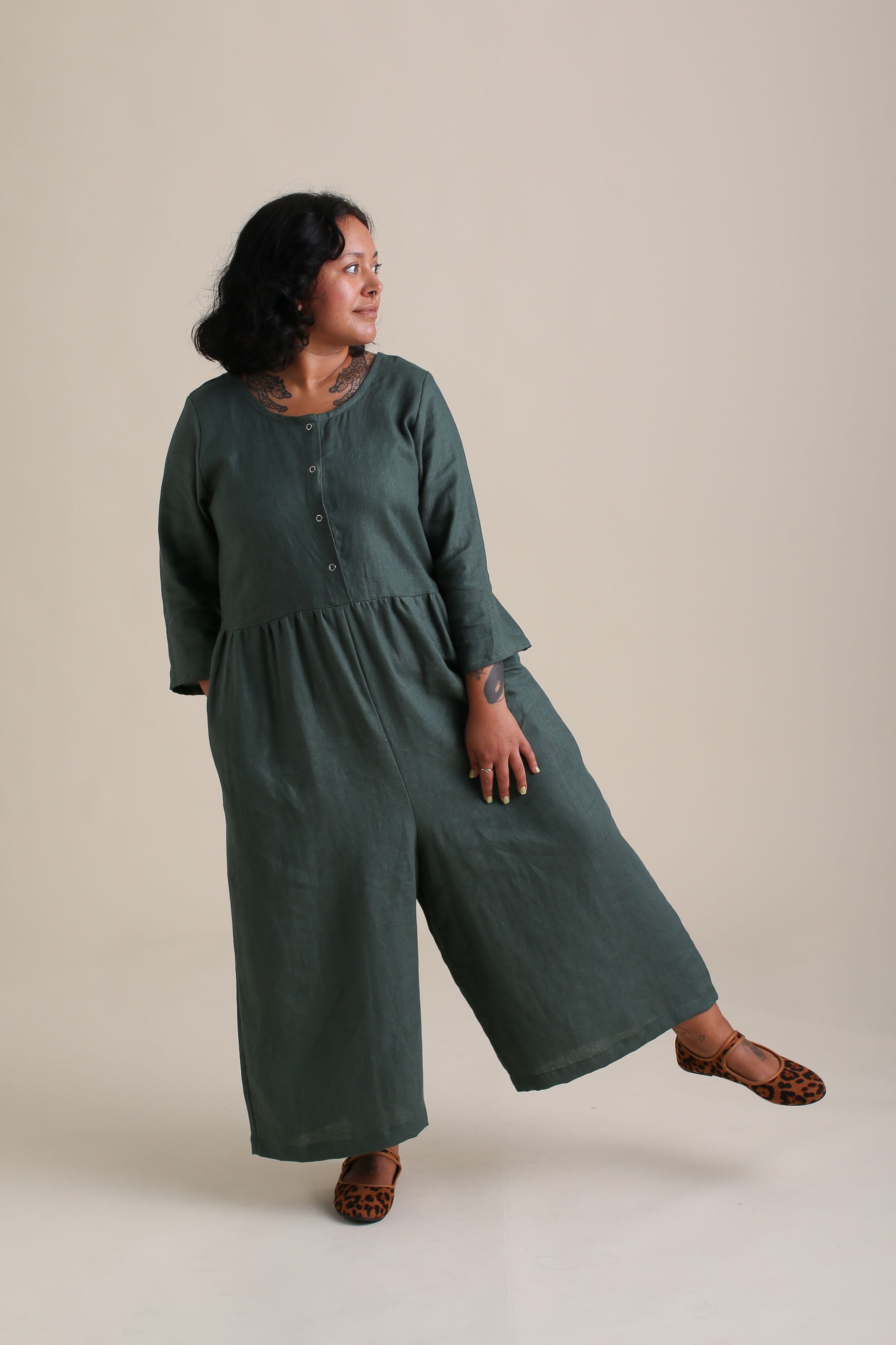 The Ranch Jumpsuit is so versatile with its gathered pants and snap-up bodice, designed for ultimate comfort and easy nursing access. Featuring brass snaps that can be worn front or back and 3/4 length sleeves, it now comes in three length options to suit your height and style.