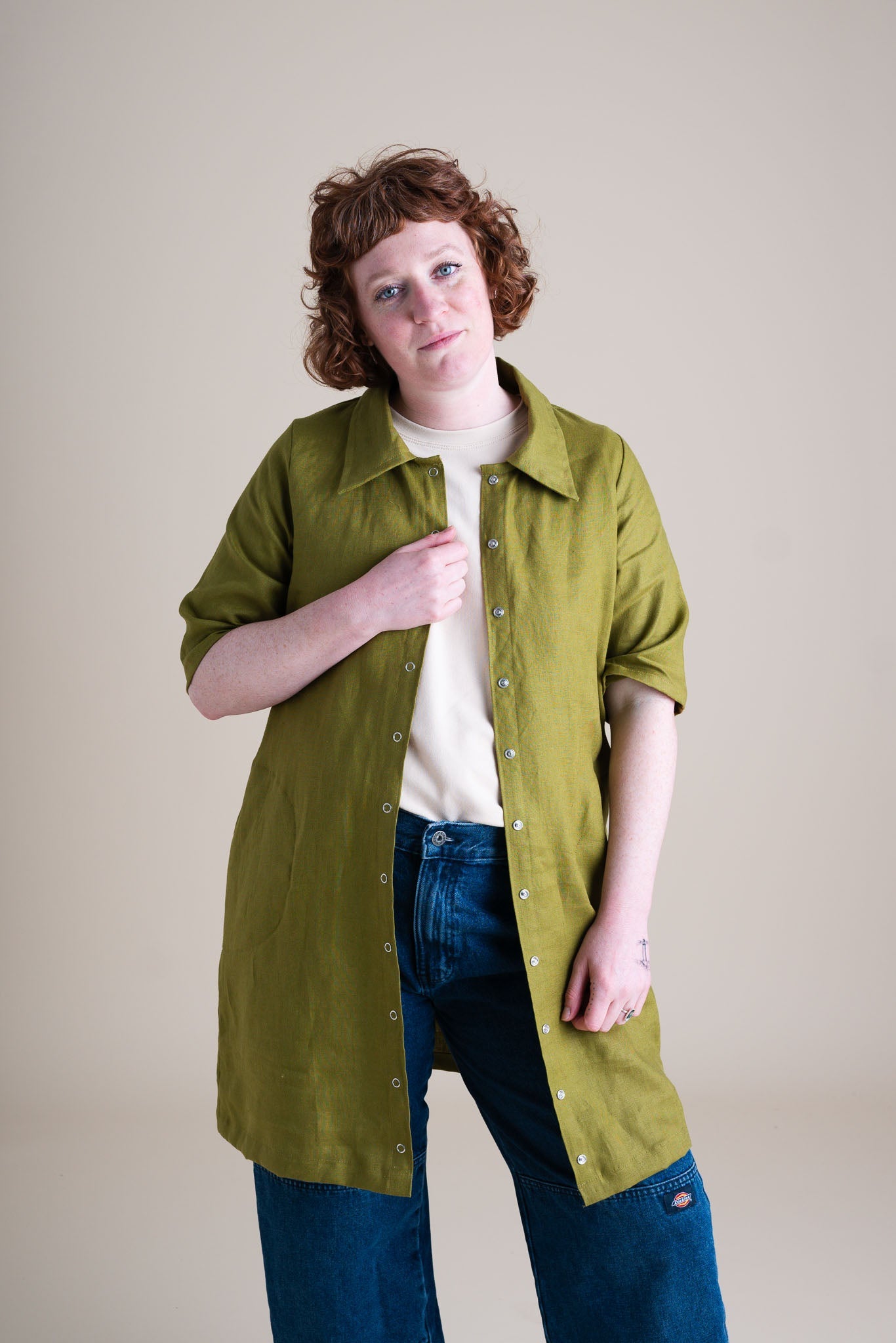 Crafted from 100% linen, the Revolution Dress is the ultimate versatile piece. With snaps down the front and convenient pockets, it’s perfect worn as a dress or left open over jeans and a tank for an effortlessly chic look. A must-have, no-fuss wardrobe staple