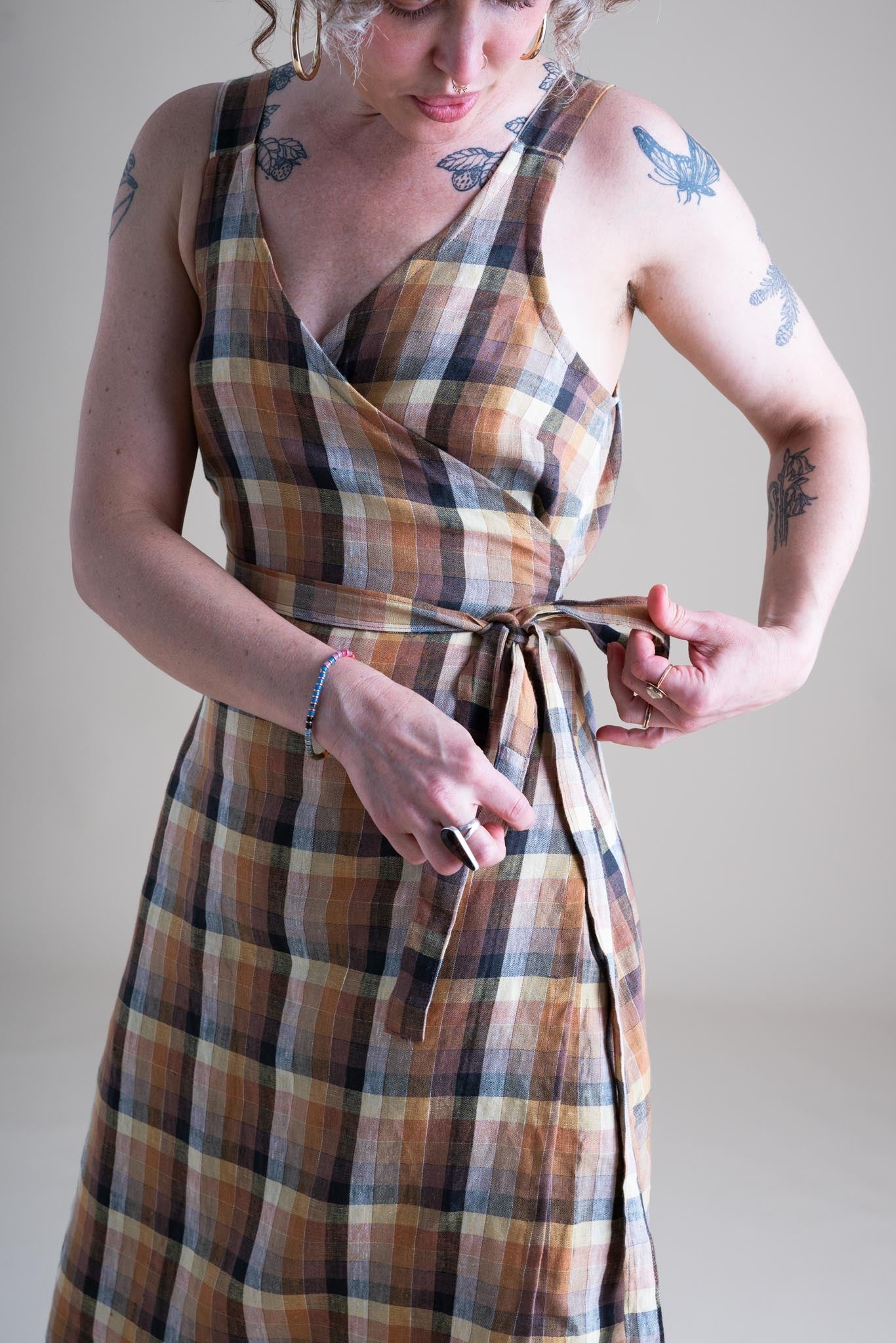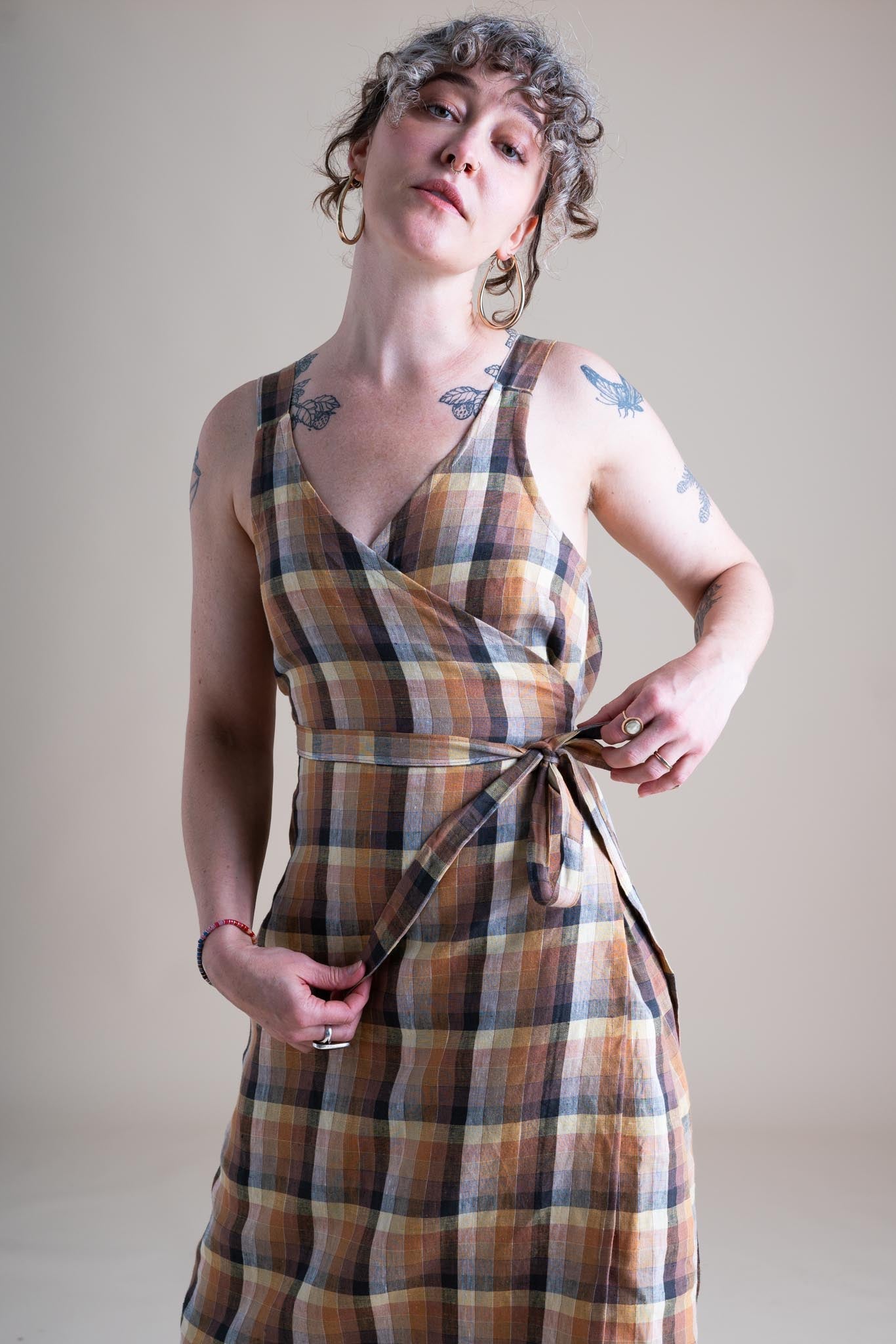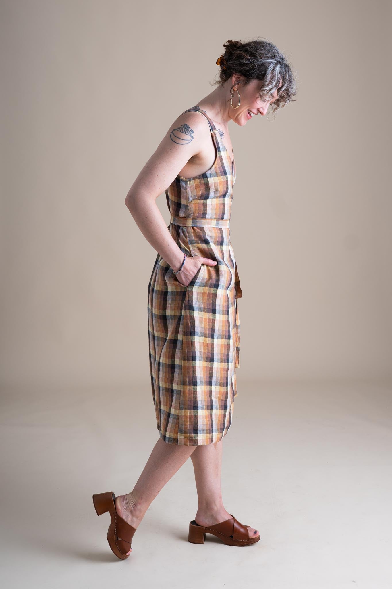 The wrap dress is back with darling new details: A deep v-neck in front and apron style back with long straps to wrap around and accentuate the waist. Effortlessly layer this sleeveless design with your favorite tee or cozy sweater. With side seam pockets to hold all your treasures, embrace summer with ease in the Rove Dress!