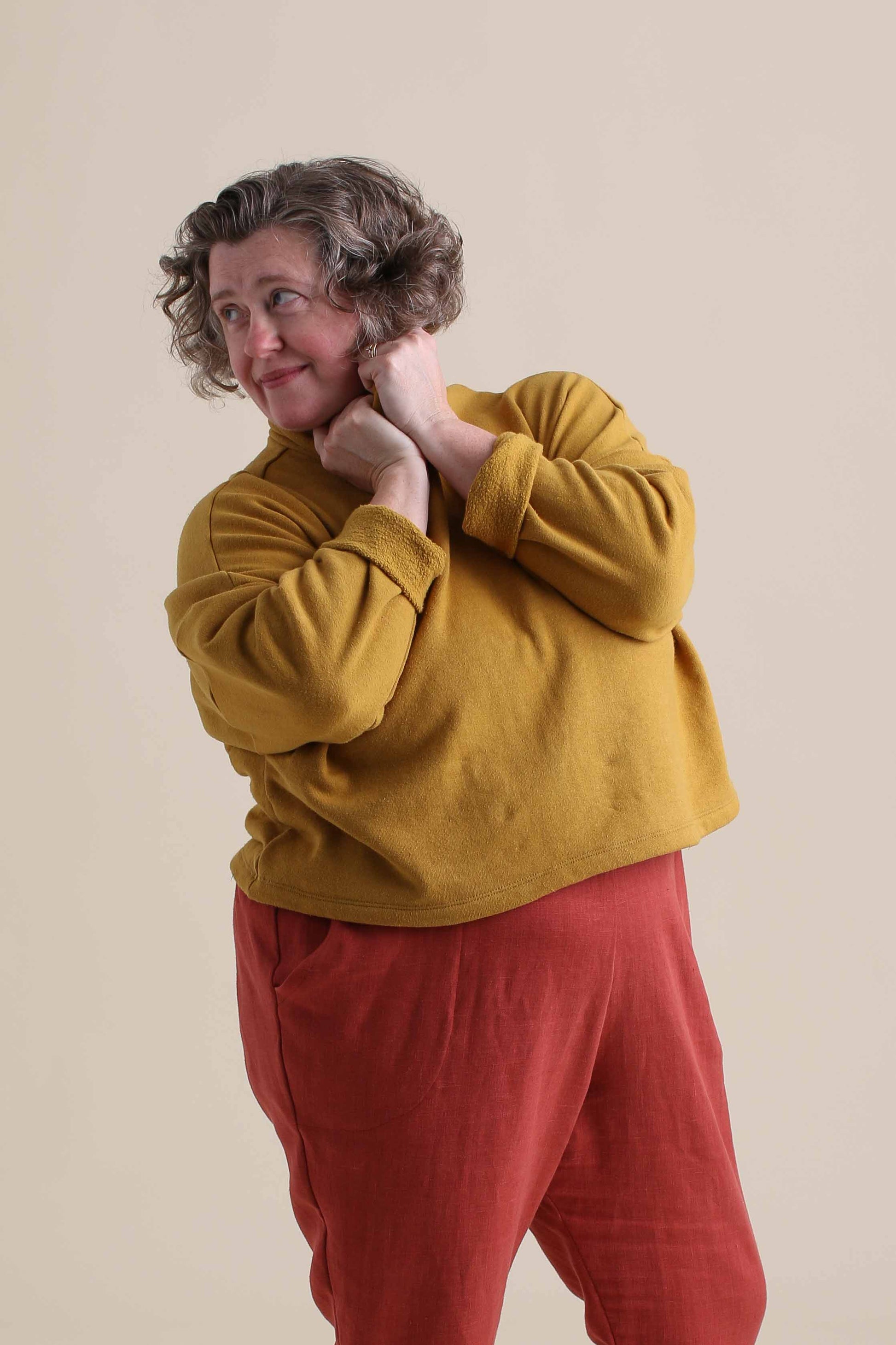 Made from a soft, sustainable blend of hemp and organic cotton fleece, the Summit Top offers breathable warmth and all-day comfort. The boxy fit and cozy cowl neck make it perfect for layering—whether you're hiking to the summit or relaxing by the fire.