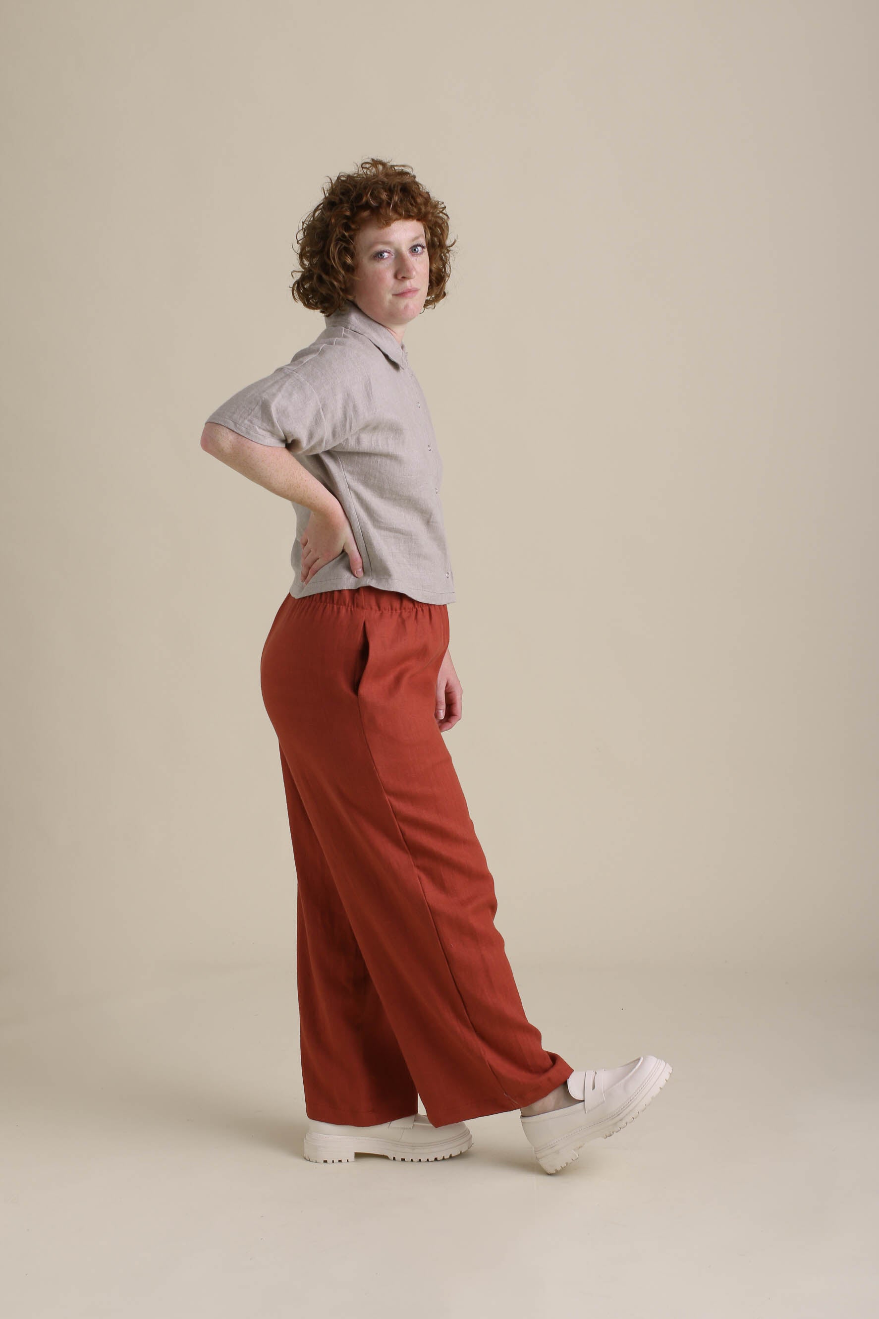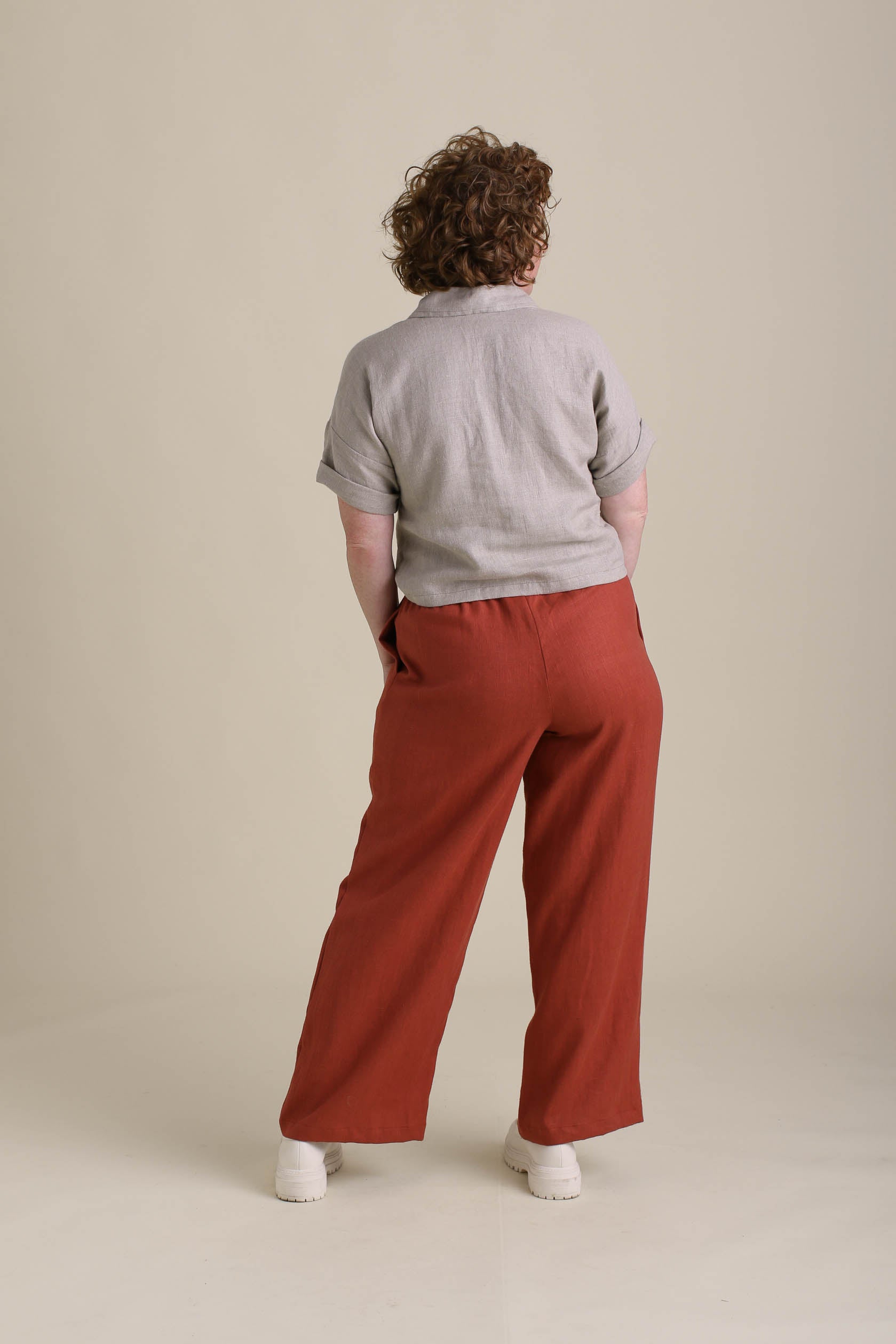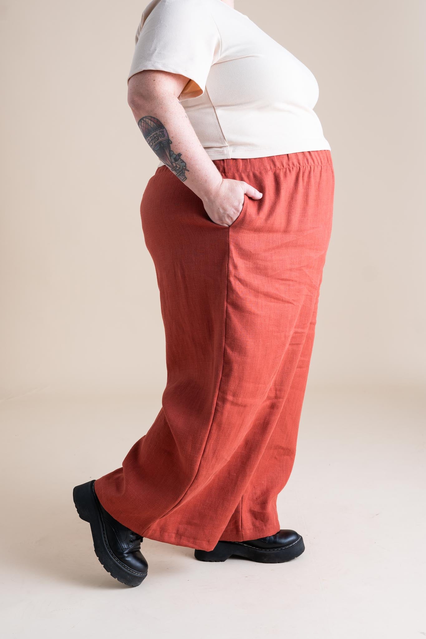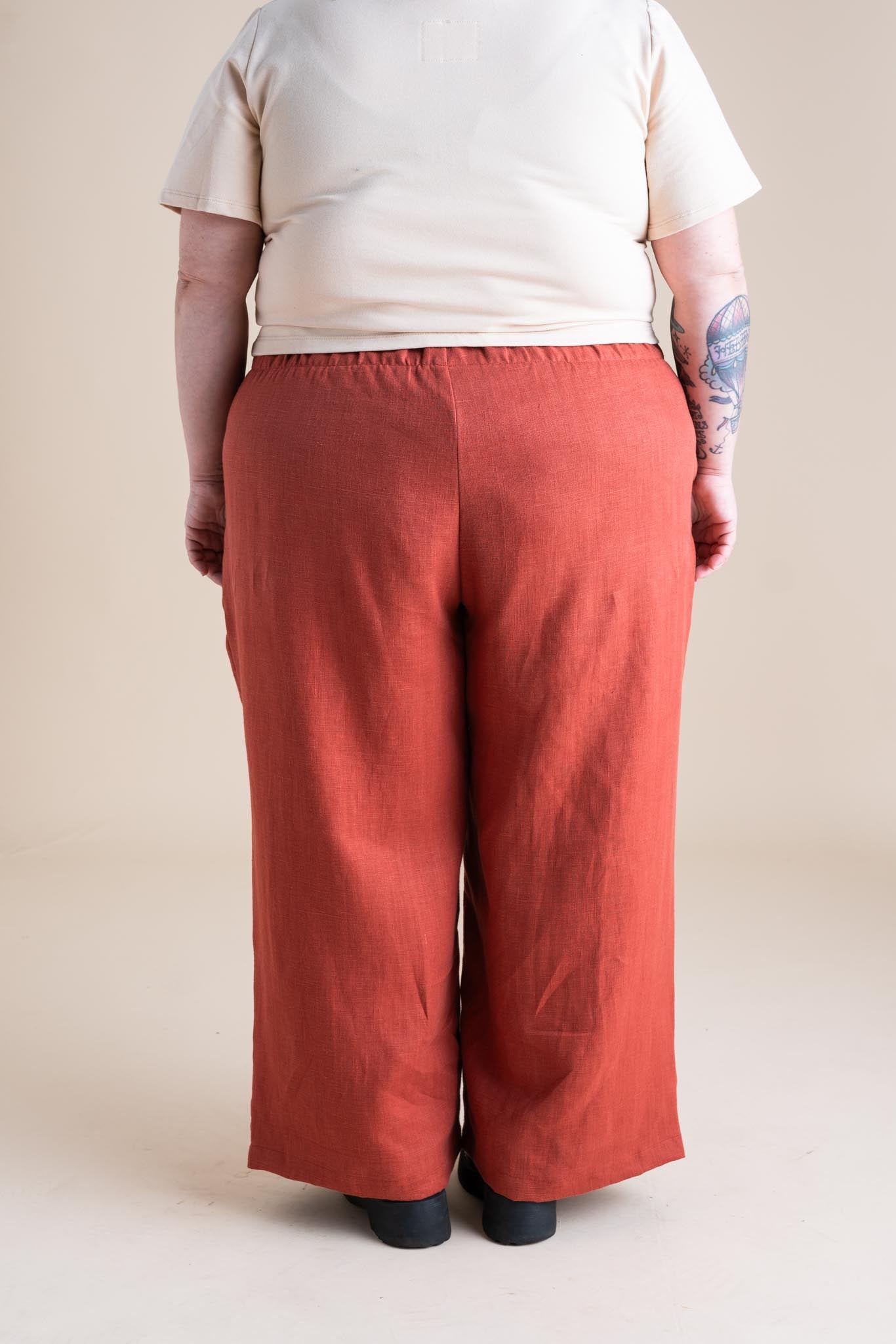 These lightweight 100% linen pants are the perfect piece to transition your wardrobe from summer to fall and back again. Pull-on style, wide-leg, inside pockets, and a comfortable wide elastic waistband.