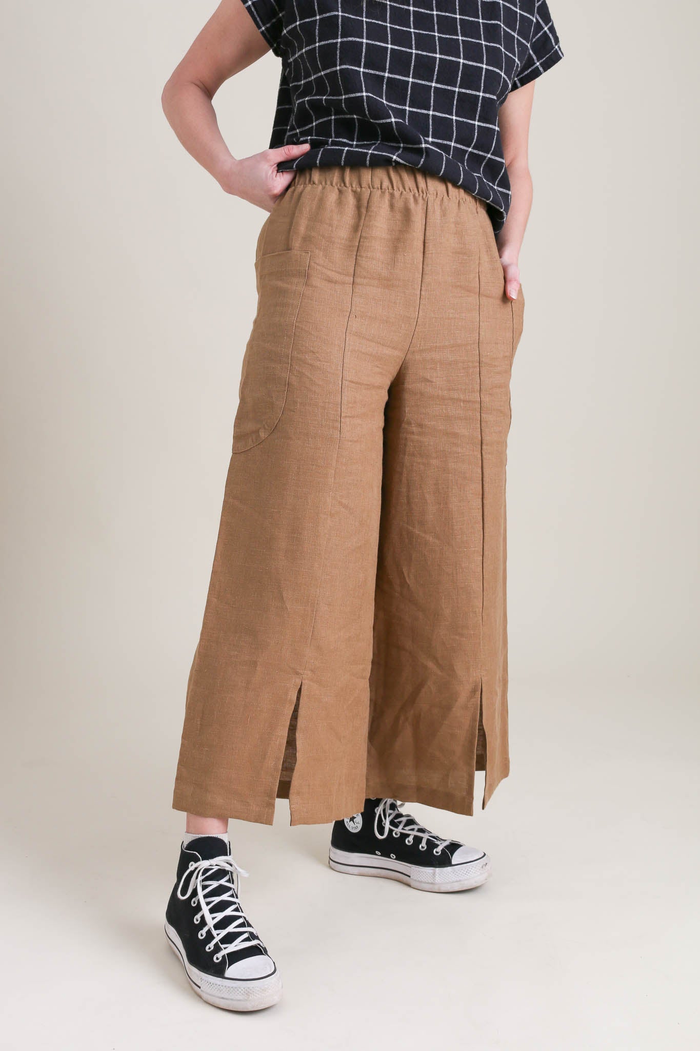 Born from the desire to eliminate waste in our production. Our Zero Waste Pant design allows for a pocket to be nested into the pant leg pattern pieces. Made from yarn-dyed 100% linen that feels softer with washing. The selvage left over from this process is used to create our Zero Waste Bag.